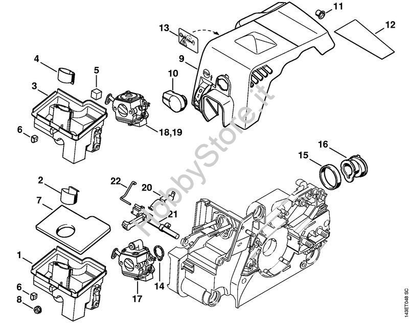 Ricambio Cappottatura Motoseghe a benzina (MS) 017 STIHL Contiene anche i ricambi da n. 10 a 12