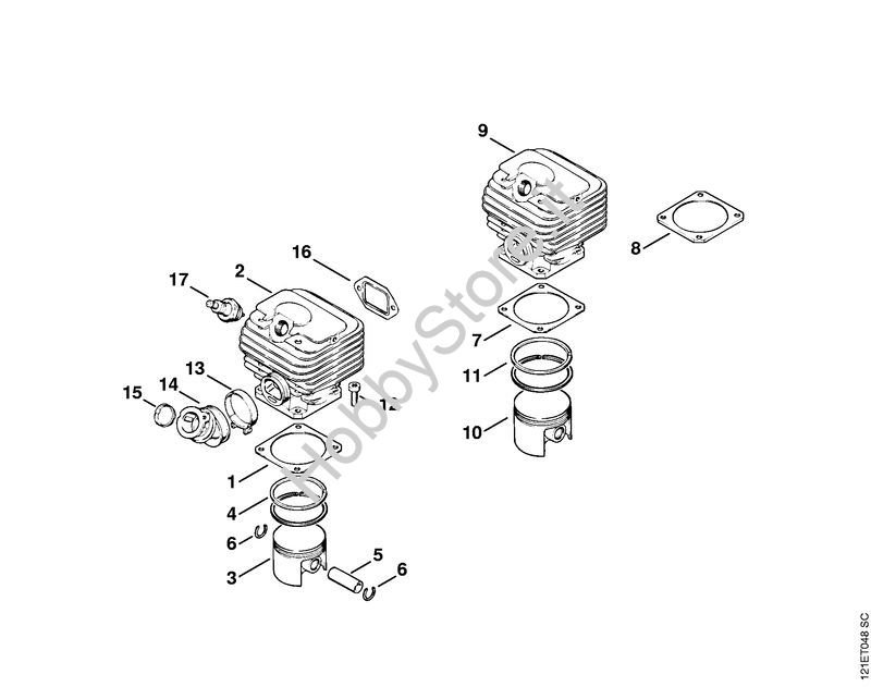 Ricambio Cilindro con pistone diametro 52 mm Motoseghe a benzina (MS) 038 STIHL