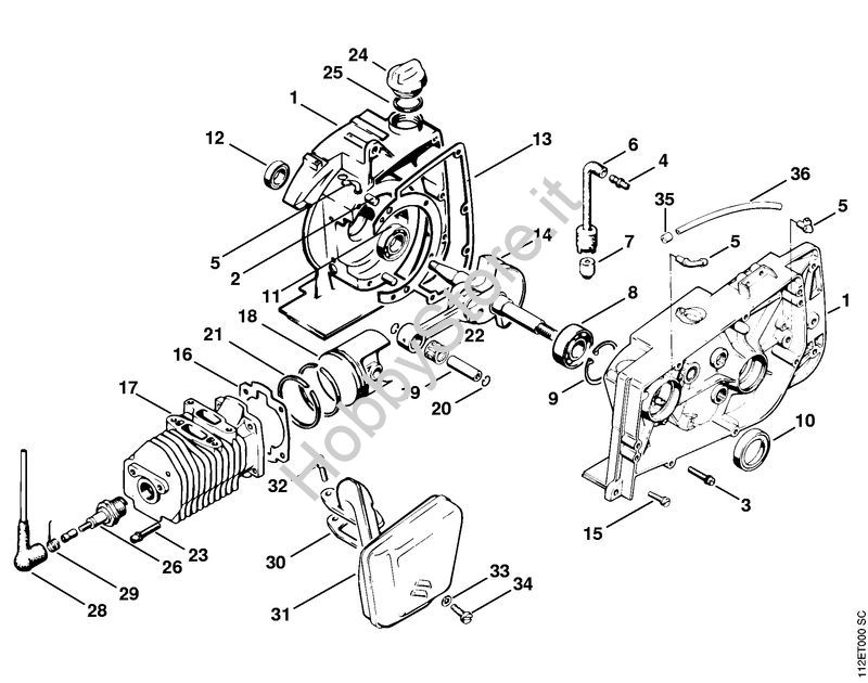 Carter albero a gomito, cilindro Motoseghe a benzina (MS) 041 G della marca STIHL
