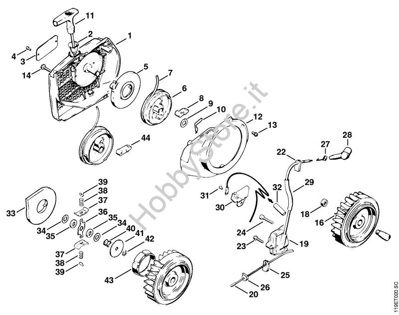 Dispositivo avviamento, impianto di accensione Motoseghe a benzina (MS) 042 Q della marca STIHL