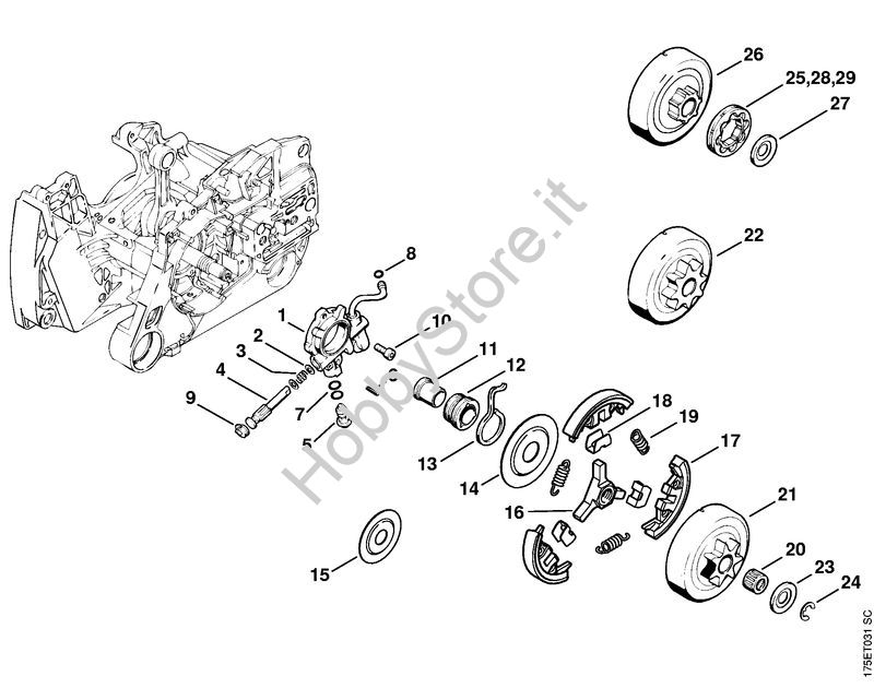 Ricambio Frizione Motoseghe a benzina (MS) 044 W STIHL Contiene anche i ricambi da n. 16 a 19