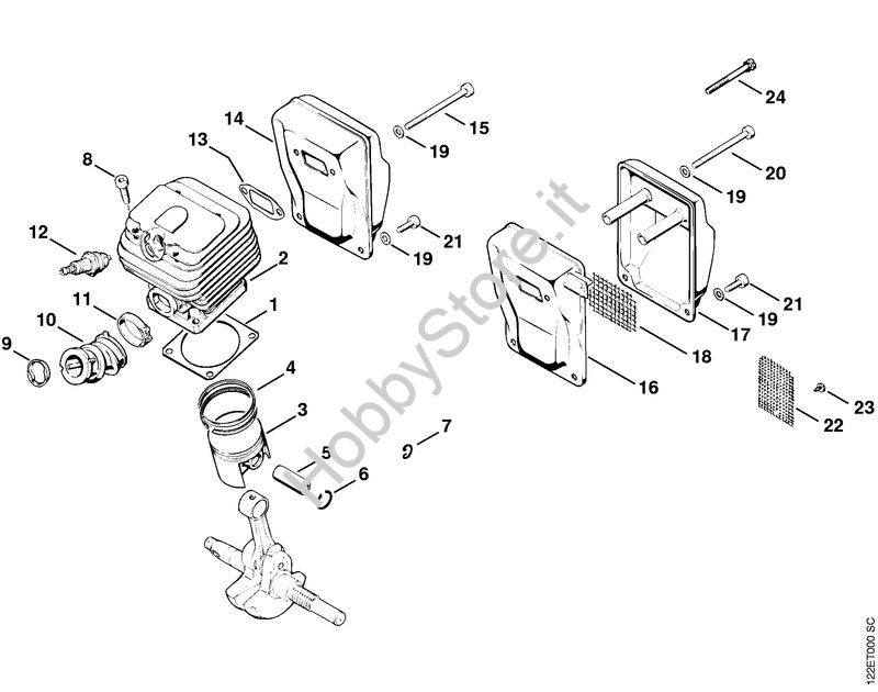 Cilindro, silenziatore Motoseghe a benzina (MS) 048 W della marca STIHL