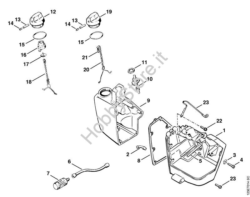 Ricambio Tappo serbatoio Motoseghe a benzina (MS) 056 STIHL Contiene anche i ricambi nr. da 13 a 15, 20, 21