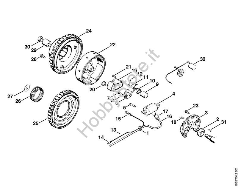 Ricambio Magnete di accensione Motoseghe a benzina (MS) 070 STIHL Contiene anche i ricambi da n. 3 a 22