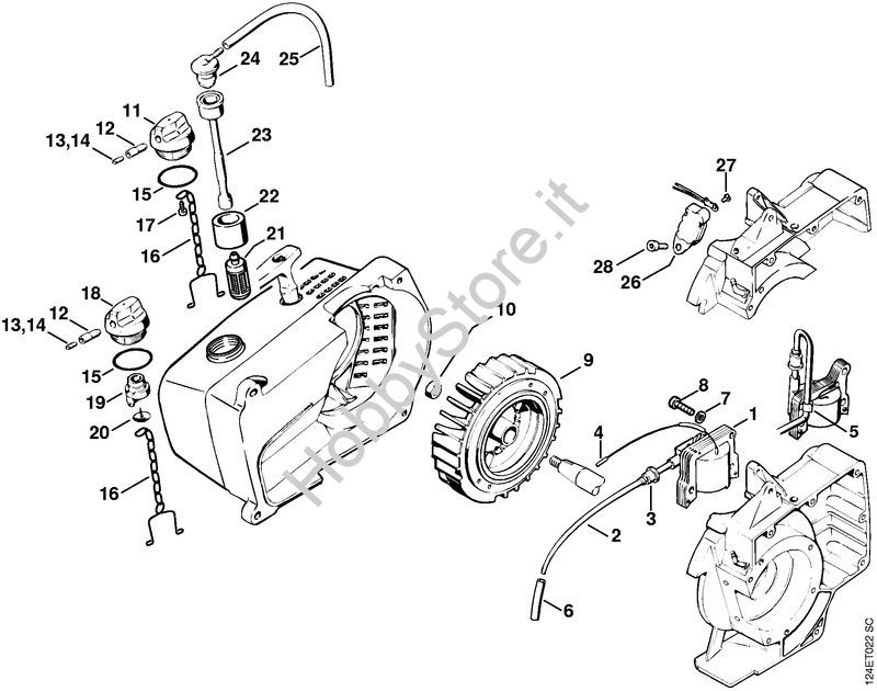 Ricambio Tappo serbatoio Motoseghe a benzina (MS) 076 S STIHL Contiene anche i ricambi da n. 12 a 17