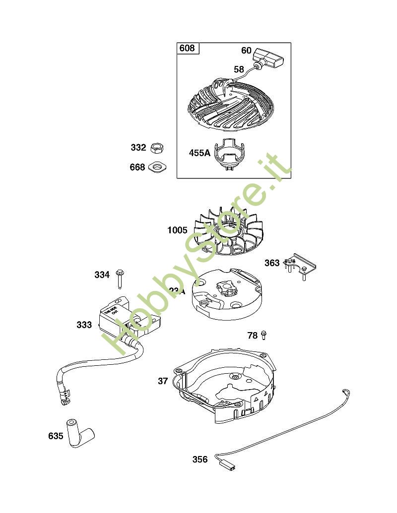 J - GRUPPO VOLANO, ACCENSIONE E MOTORINO DI AVVIAMENTO B&S - 09 seriale da 09P702-0229-H1 brand Stihl