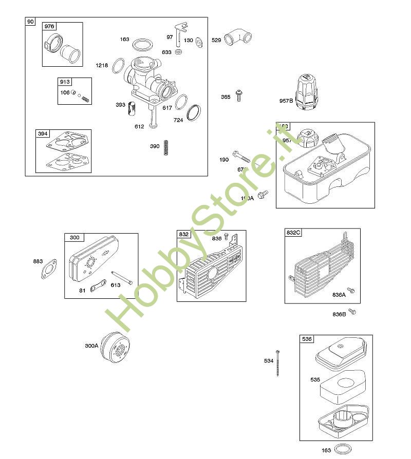 A - Depuratore aria, carburatore, sistema di scarico, alimentazione carburante B&S - 09 seriale da 09T602-0127-B1 brand Stihl