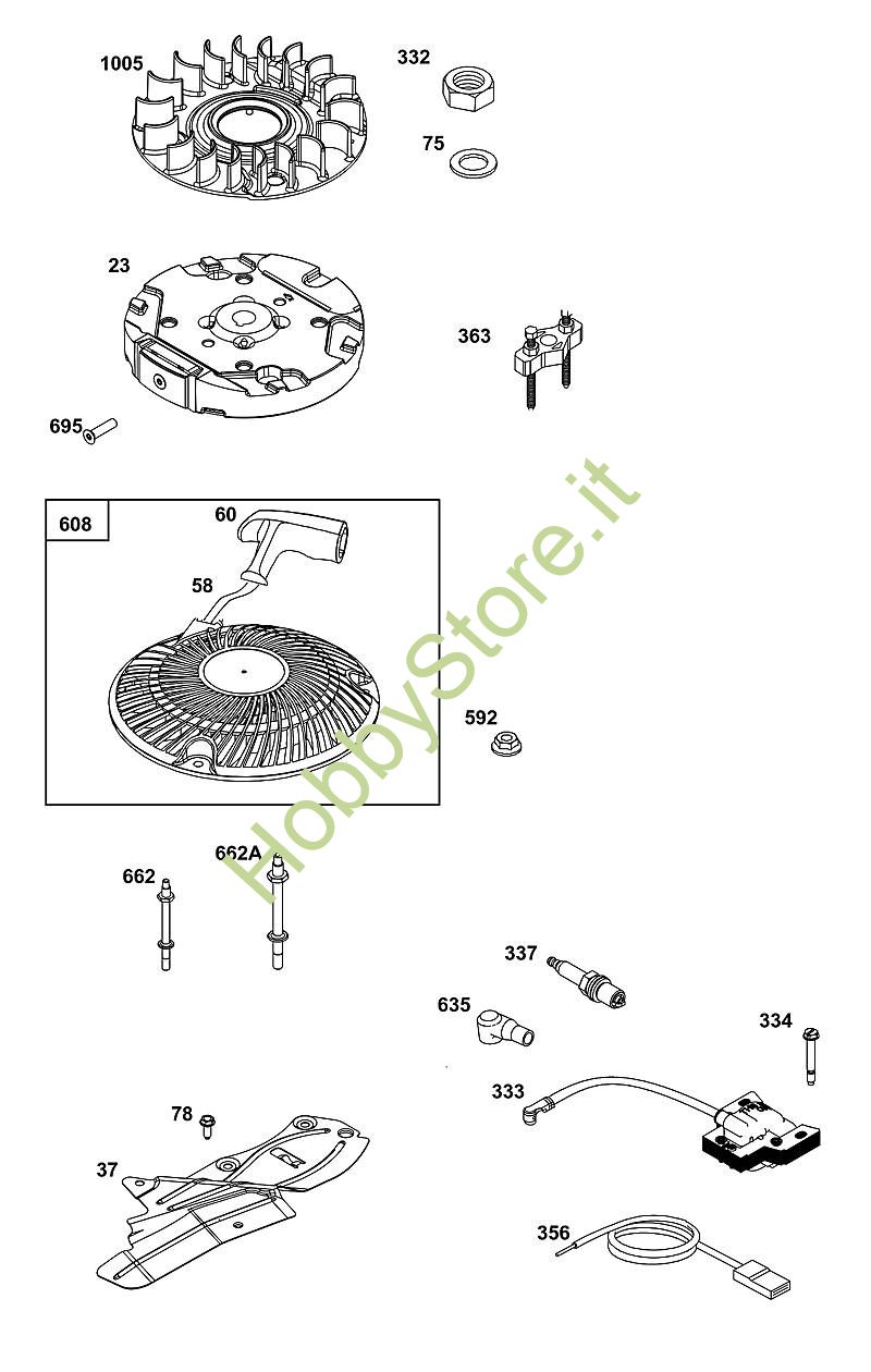 J - GRUPPO VOLANO, ACCENSIONE E MOTORINO DI AVVIAMENTO B&S - 10 seriale da 100602-0036-H5 brand Stihl