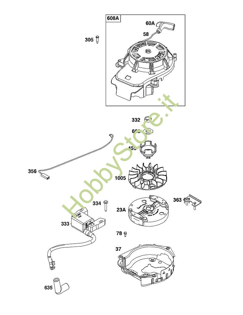 J - GRUPPO VOLANO, ACCENSIONE E MOTORINO DI AVVIAMENTO B&S - 10 seriale da 103M02-0085-H1 brand Stihl