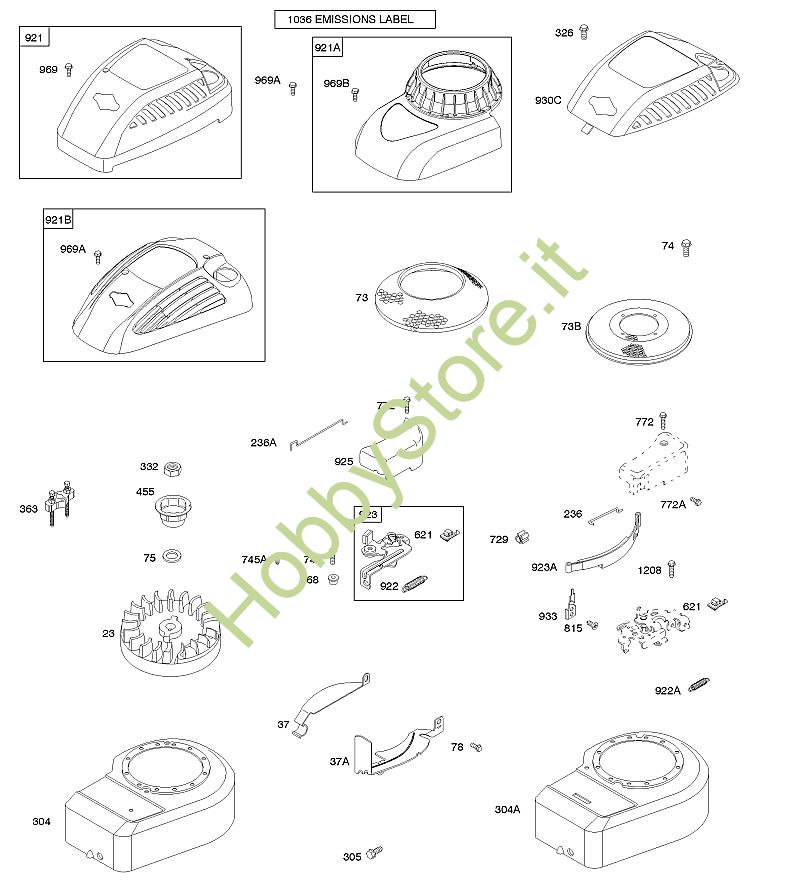 B - Alloggiamento/ripari ventola, freno, volano B&S - 10 seriale da 10A902-2128-E1 brand Stihl