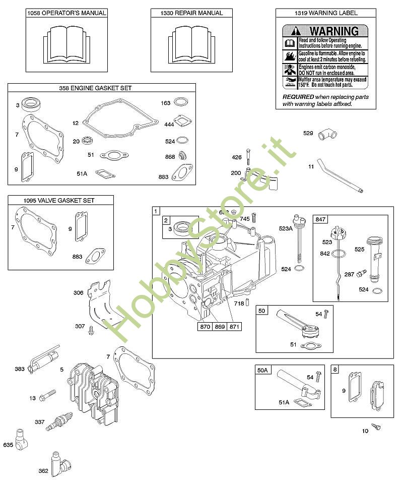 - F - Cilindro, testata, set guarnizioni motore, set guarnizioni valvole, lubrificazione, manuale per l'uso, etichetta di avvertenza 10D902-0132-B1