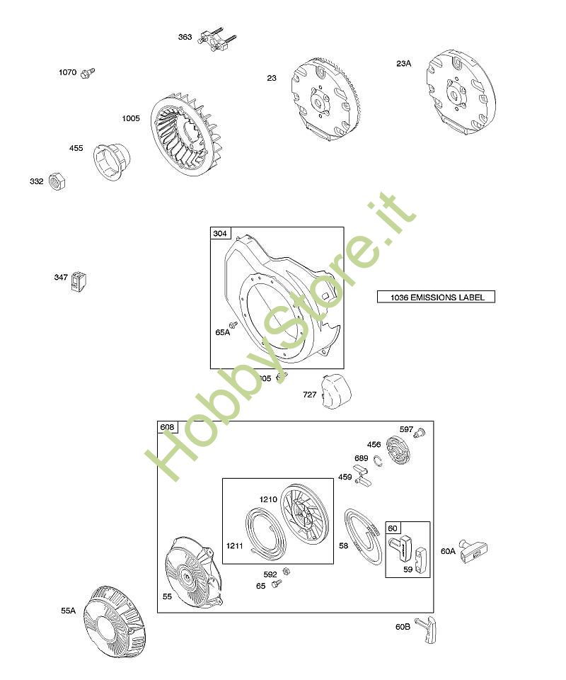 F - Volano, alloggiamento ventola, dispositivo di avviamento a riavvolgimento B&S - 11 seriale da 110412-0153-E1 brand Stihl