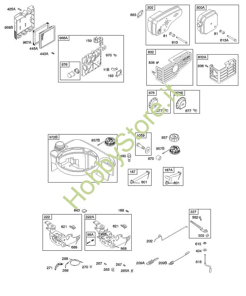 A - Depuratore aria, comandi, sistema di scarico, alimentazione carburante, molla regolatore B&S - 12 seriale da 122H82-0125-01 brand Stihl