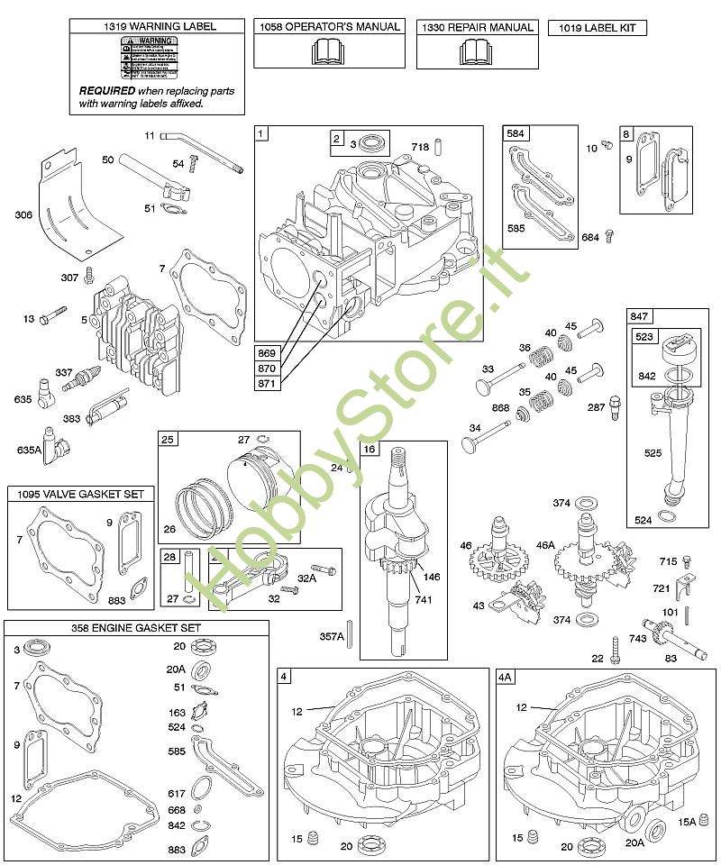 - D - Albero a camme, albero motore, cilindro, coppa motore, set guarnizioni, lubrificazione, gruppo pistone, valvole 122H82-0125-01