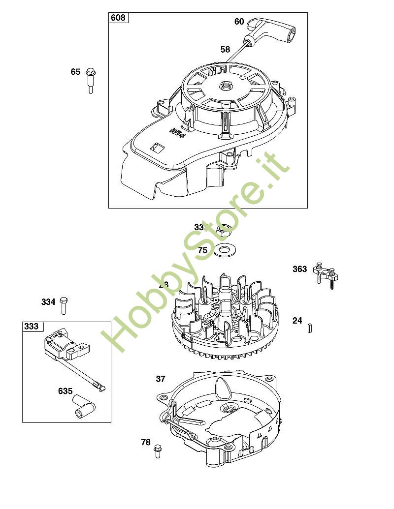 J - GRUPPO VOLANO, ACCENSIONE E MOTORINO DI AVVIAMENTO B&S - 12 seriale da 123P02-0067-H1 brand Stihl