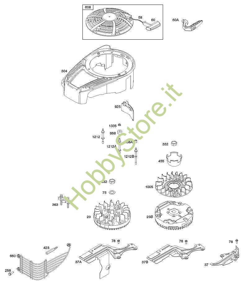C - Alloggiamento ventola, coperchio/protezioni, volano, dispositivo di avviamento a riavvolgimento B&S - 12 seriale da 12Q902-0154-B1 brand Stihl