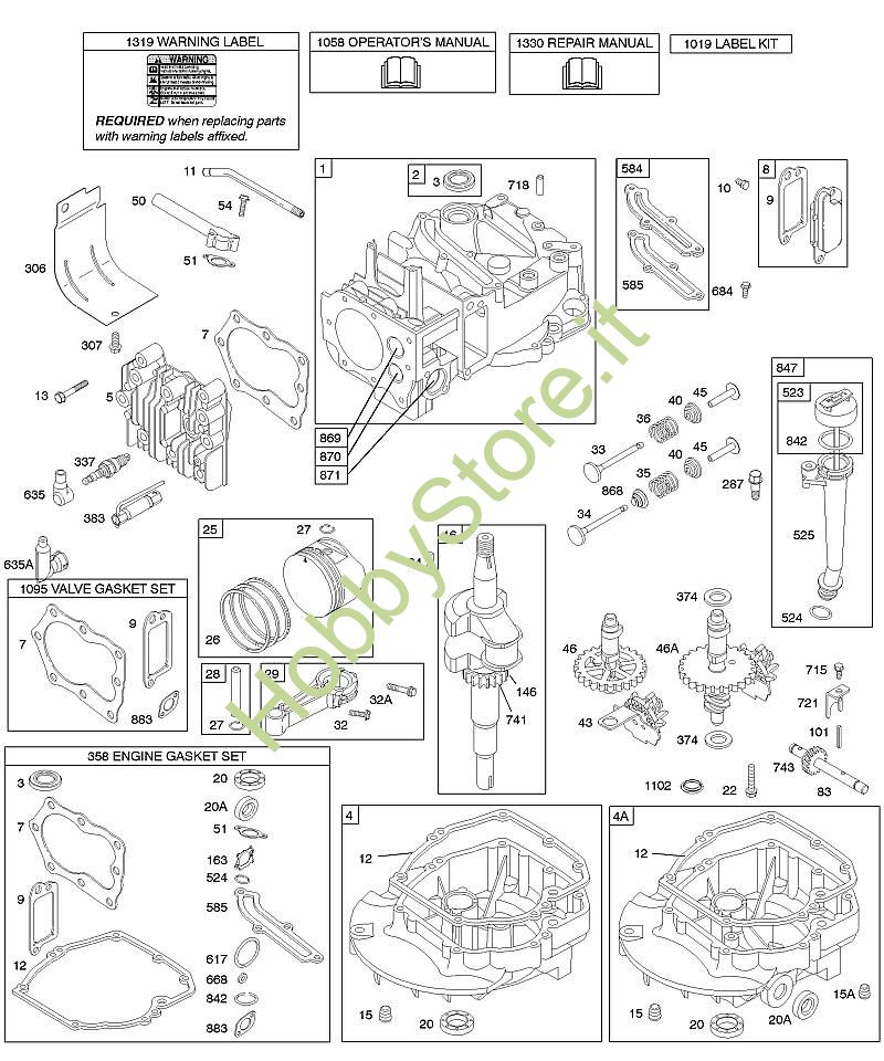 C - Camme, albero motore, cilindro, coppa motore, set guarnizioni, lubrificazione, gruppo pistone, valvole B&S - 12 seriale da 12X802-0115-E1 brand Stihl