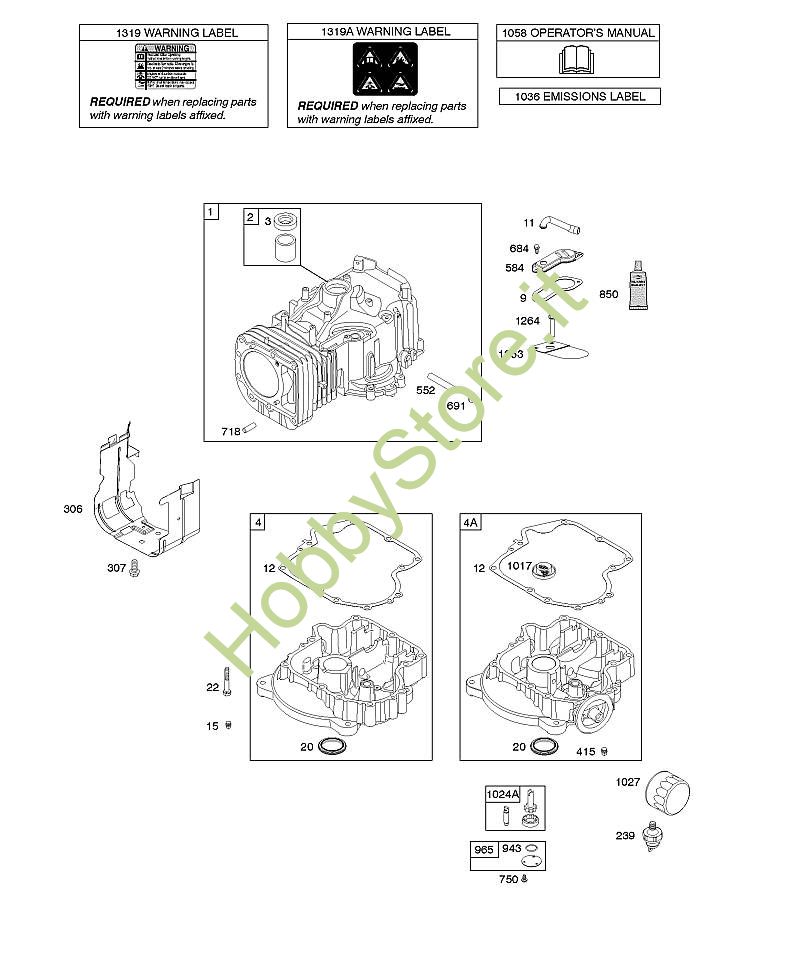G - Cilindro, coppa motore, lubrificazione, manuale per l'utente, etichetta di avvertenza B&S - 21 seriale da 217902-0119-E1 brand Stihl