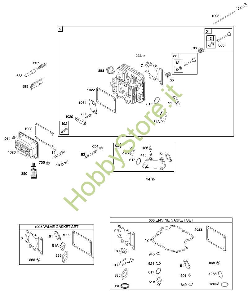 G - Testata, set guarnizioni motore, set guarnizioni valvola, collettore di aspirazione B&S - 21 seriale da 21A902-0171-E1 brand Stihl