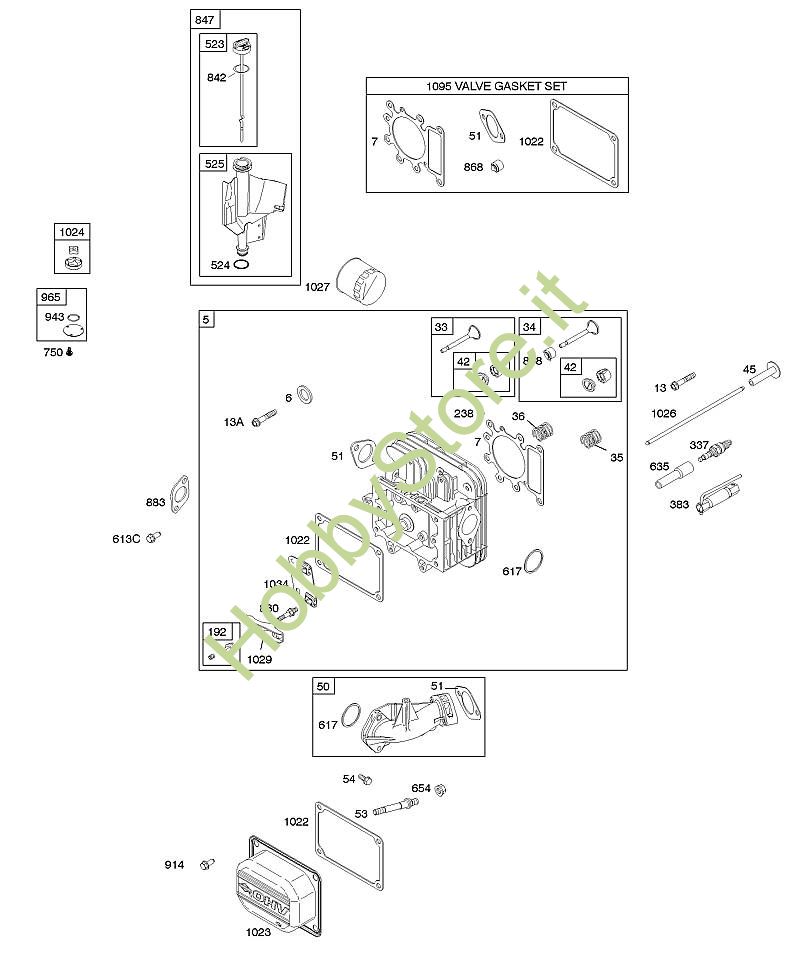 E - Testata, set guarnizioni valvole, lubrificazione, valvole B&S - 28 seriale da 282H07-0113-E1 brand Stihl