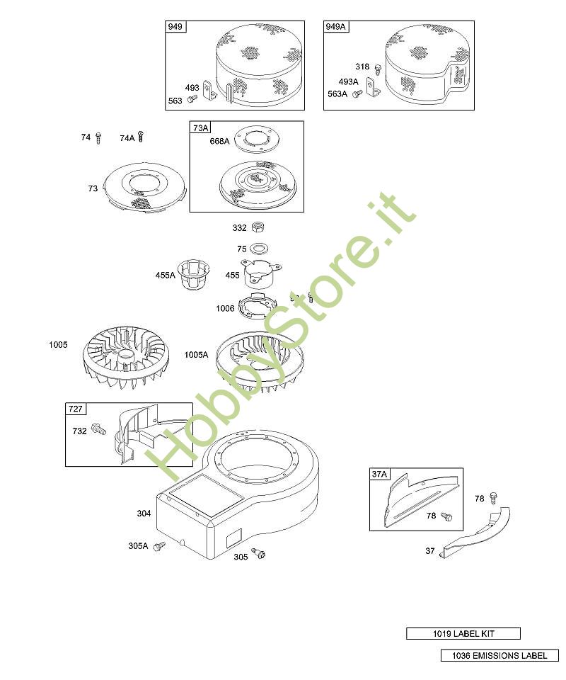 C - Alloggiamento ventola, ripari, set etichette B&S - 28 seriale da 28B707-1146-E1 brand Stihl