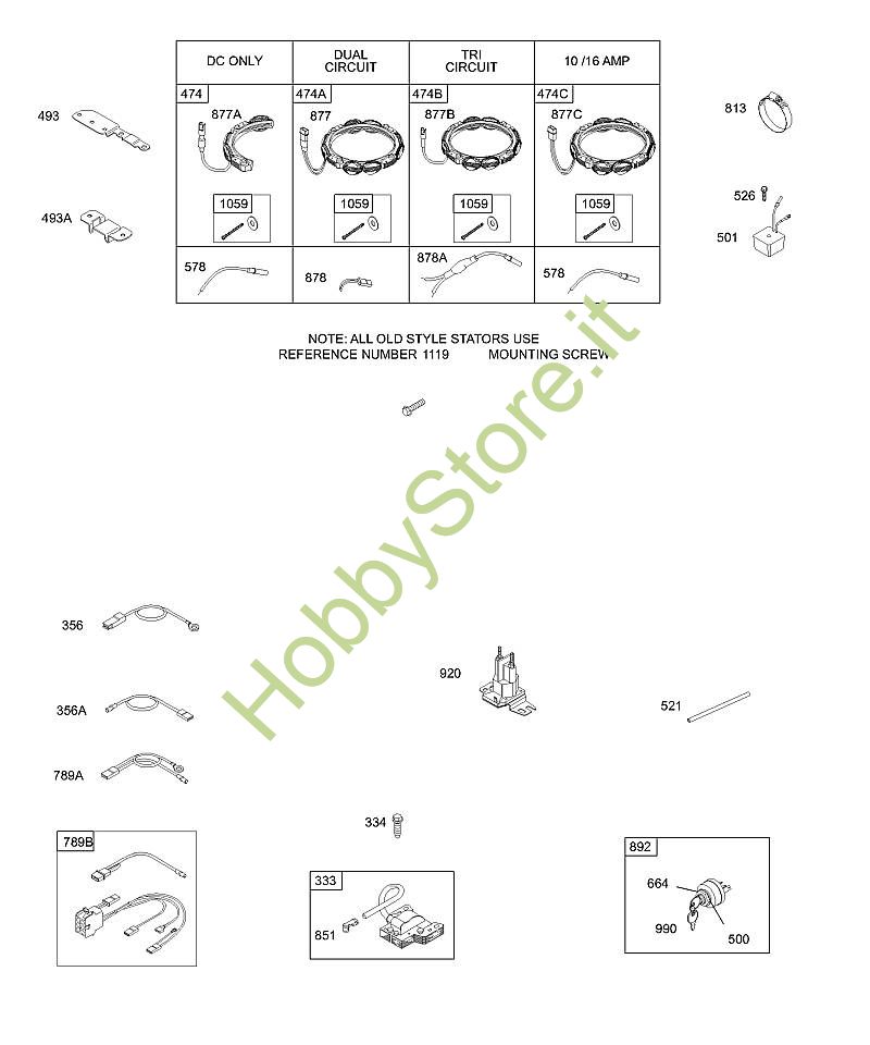B - Alternatore, cavi, magnete, interruttore chiavetta B&S - 28 seriale da 28N707-1139-E1 brand Stihl
