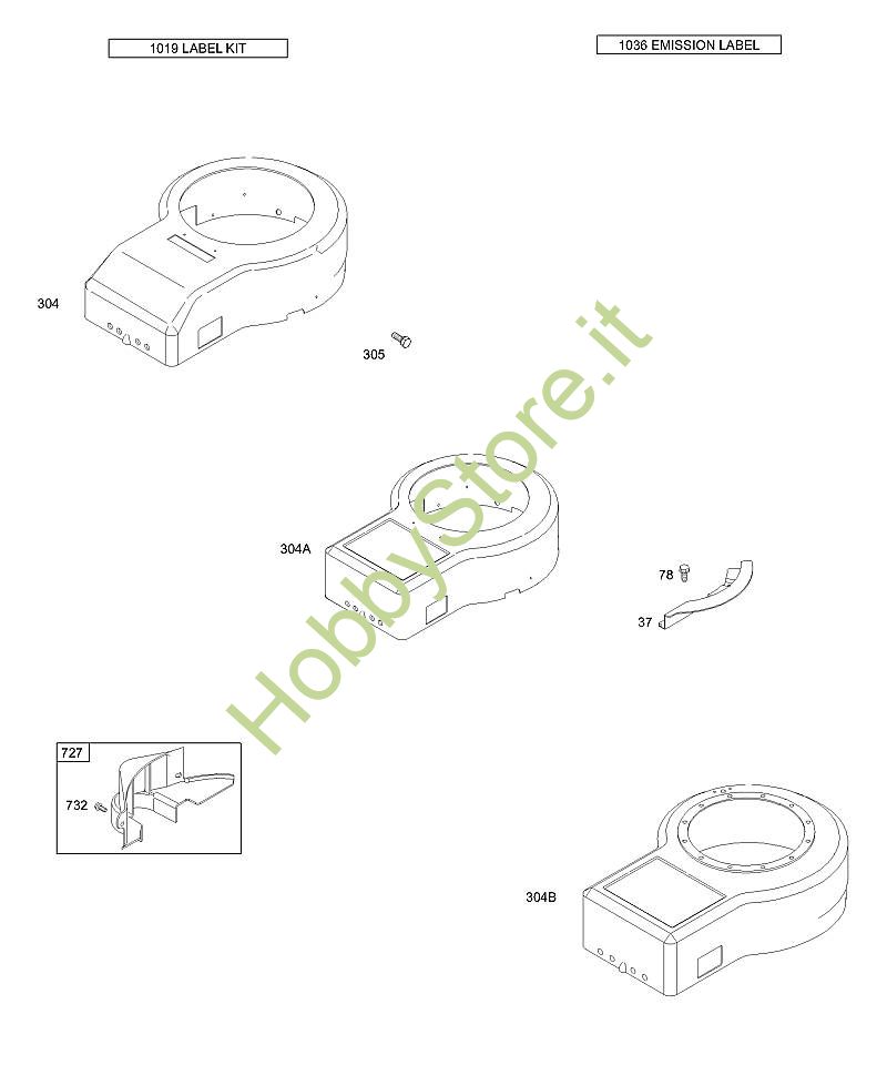 C - Alloggiamenti ventola, etichetta e etichette emissioni B&S - 28 seriale da 28N707-1139-E1 brand Stihl