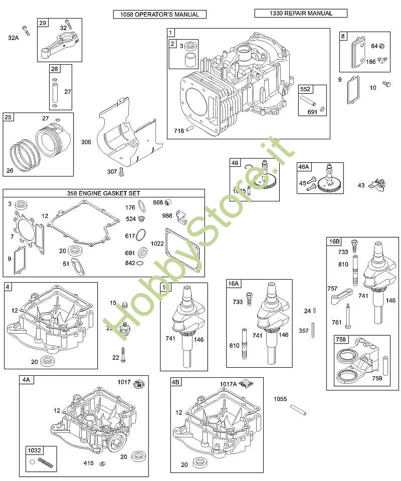 F - Coppa/coperchio carter motore, albero motore, cilindro, pistone/anelli, biella B&S - 28 seriale da 28N707-1139-E1 brand Stihl