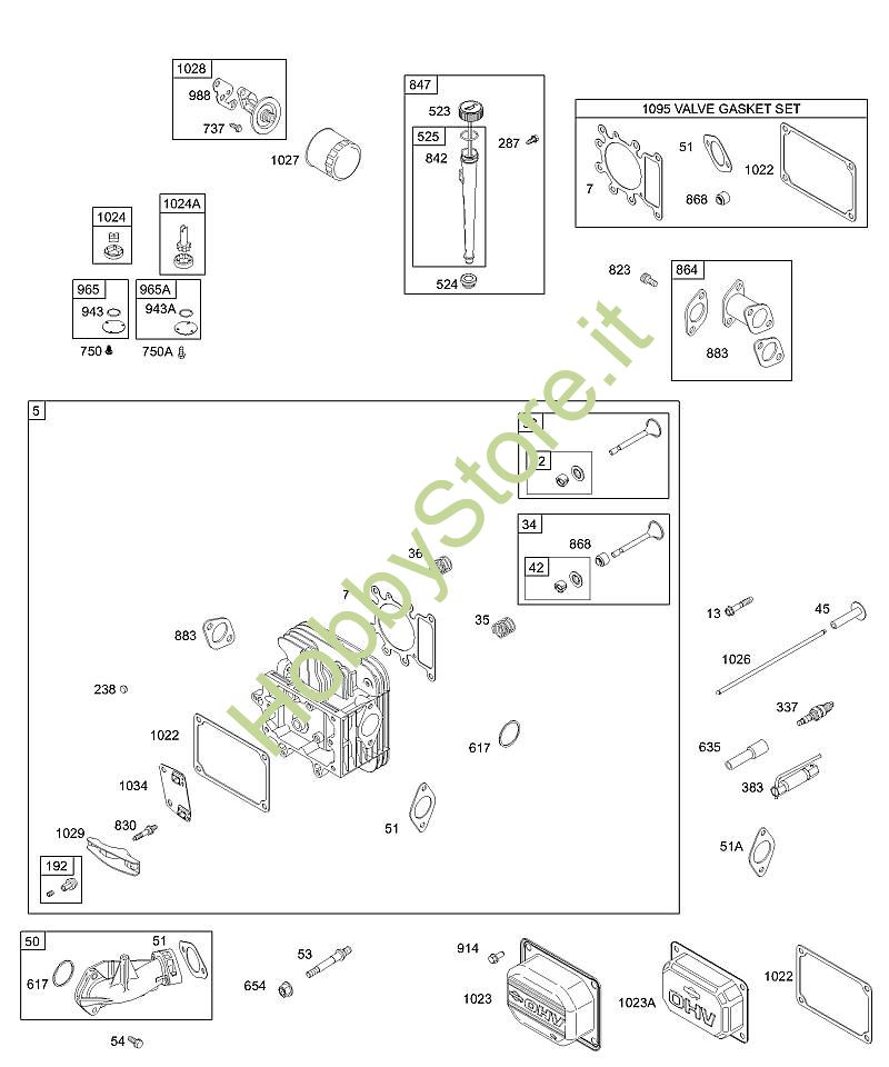 F - Testata, coperchio bilanciere, pompa olio, filtro olio B&S - 28 seriale da 28S707-1149-E1 brand Stihl