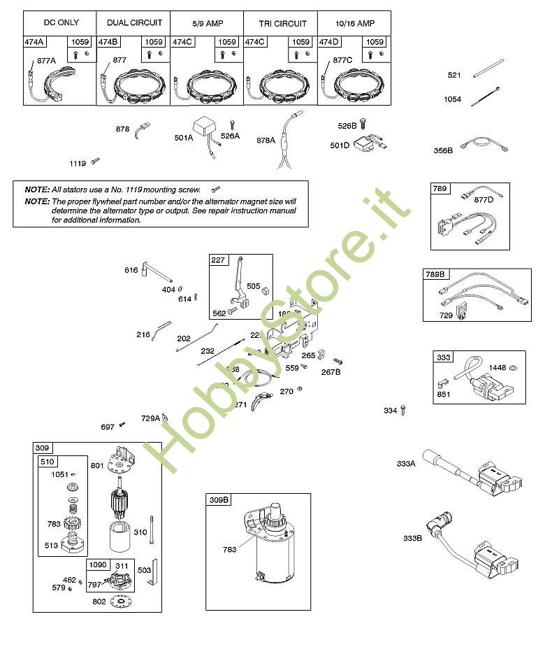 B - Alternatore, comandi, dispositivo di avviamento elettrico, molla regolatore, accensione B&S - 31 seriale da 31G777-0300-B1 brand Stihl