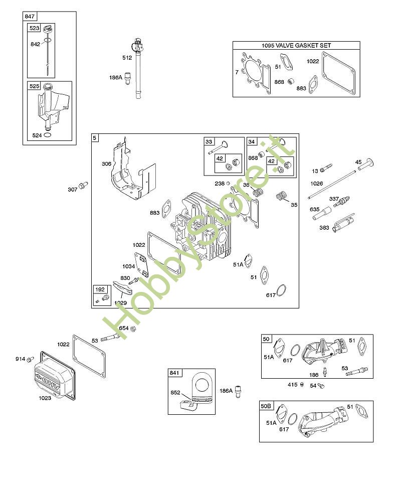 E - Testata del cilindro, set guarnizioni valvola, collettore di aspirazione, valvole B&S - 31 seriale da 31G777-0300-B1 brand Stihl