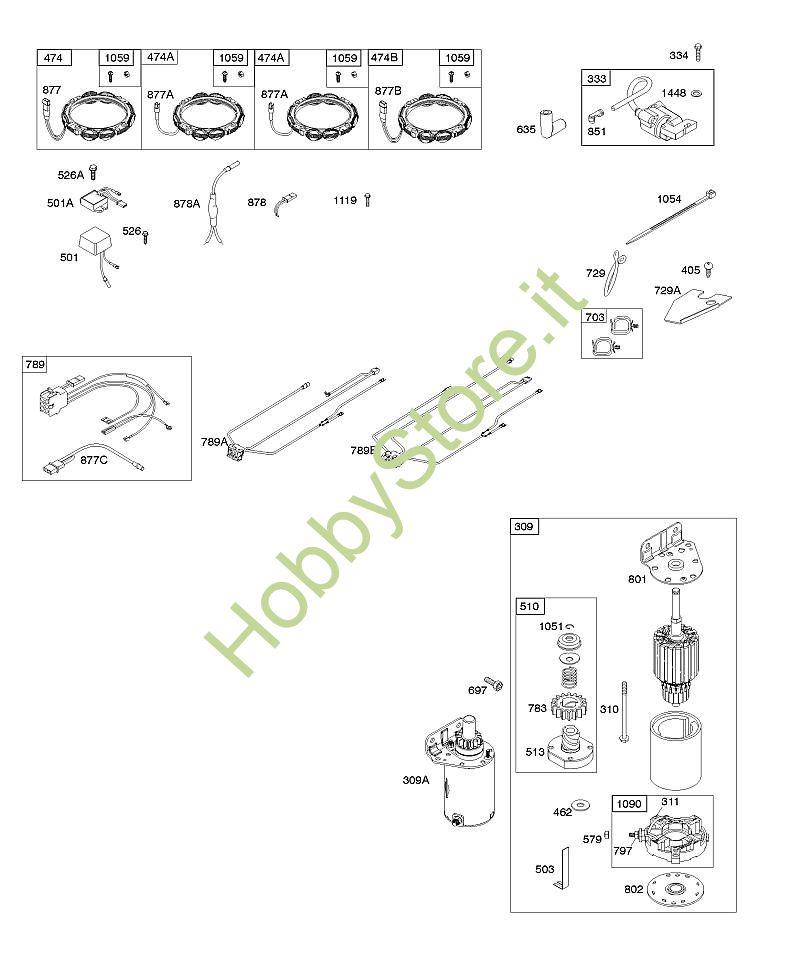 A - Generatore, fascio cavi, motorino di avviamento, accensione B&S - 40 seriale da 405577-0112-E1 brand Stihl