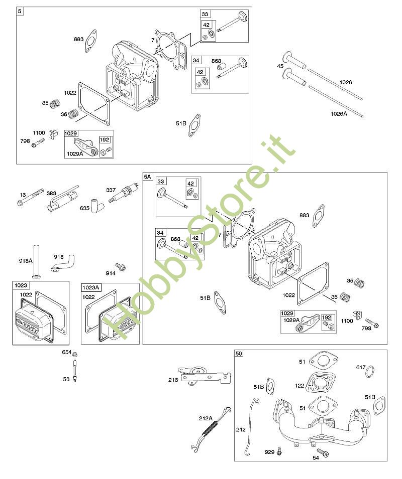 D - Testata del cilindro, coperchio bilancieri, collettore di aspirazione B&S - 40 seriale da 405577-0112-E1 brand Stihl