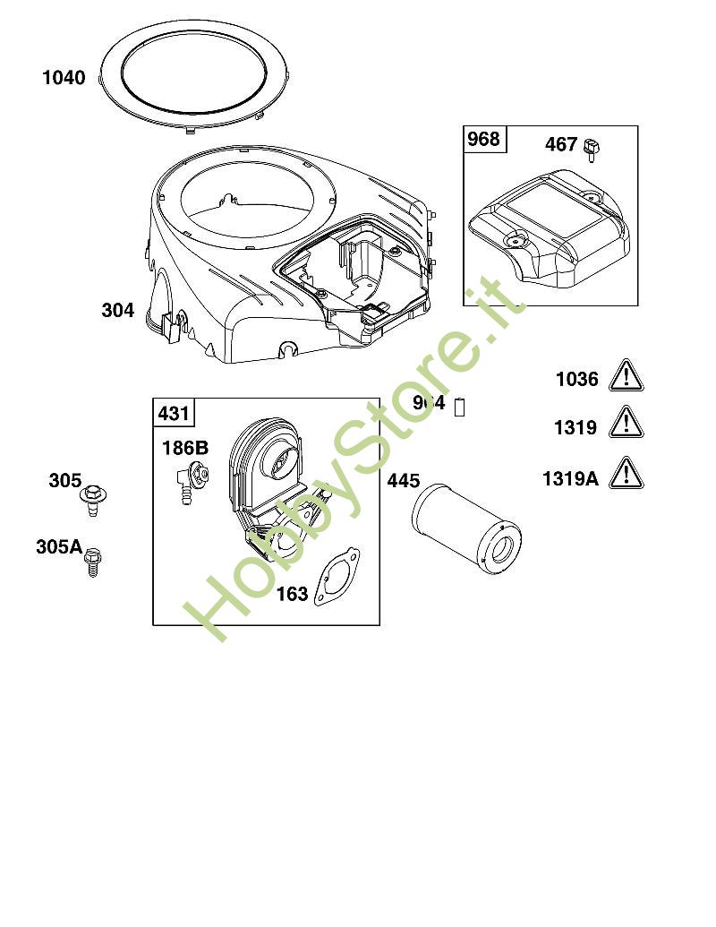 B - GRUPPO ALLOGGIAMENTO VENTOLA E FILTRO ARIA 44N677-0017-B5