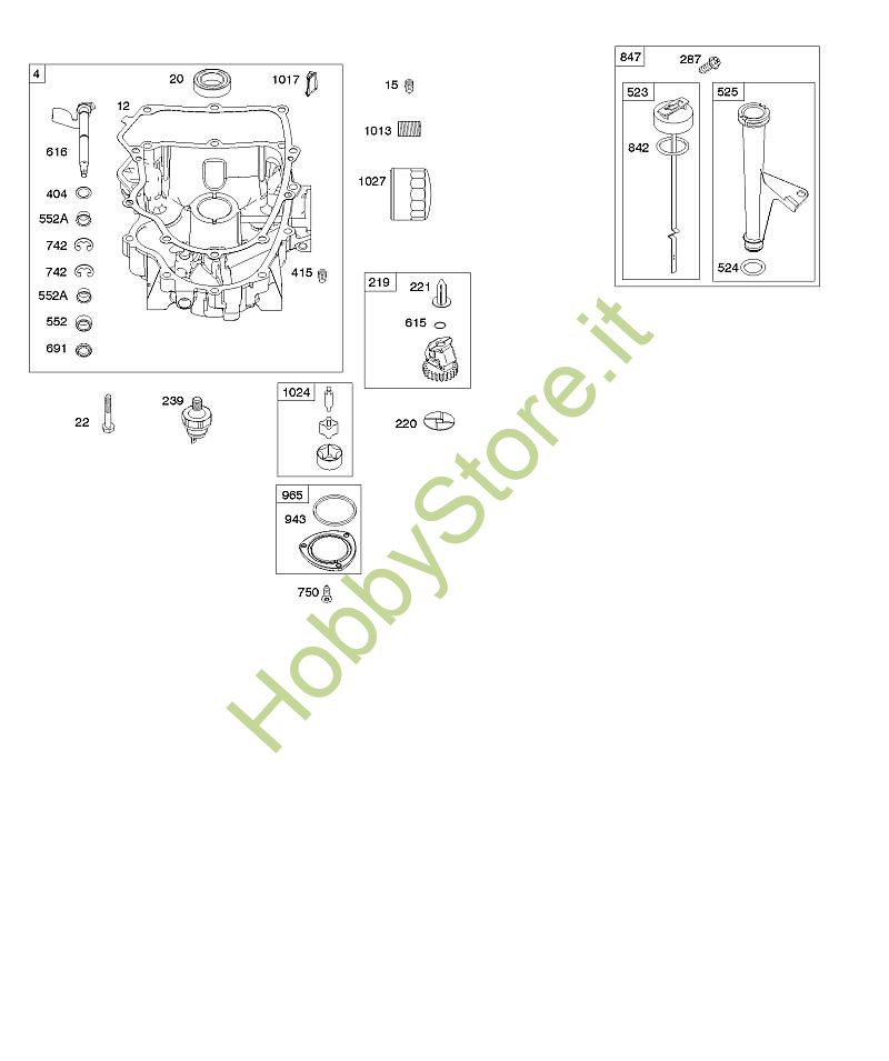 E - Coppa olio, pompa olio, complessivo astina/tubetto di misurazione B&S - 44 seriale da 44R577-0001-H1 brand Stihl