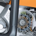 Esclusivo sistema frenante STIHL per garantire una maggiore sicurezza. La catena si blocca in un attimo, non solo in caso di un rimbalzo abbastanza forte o per l'attivazione della protezione mano anteriore, ma anche in caso di rilascio dell'impugnatura posteriore.