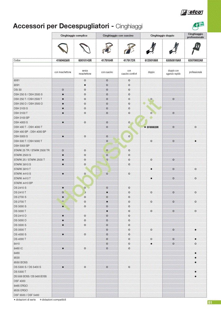 In caso di ordine di ricambi per il tuo prodotto Cinghiaggi della Efco, per permettere al nostro staff di spedirti i ricambi corretti, inserire, nella pagina finale del carrello nel campo Note varie, anno della macchina e, se disponibile, il suo numero di matricola.