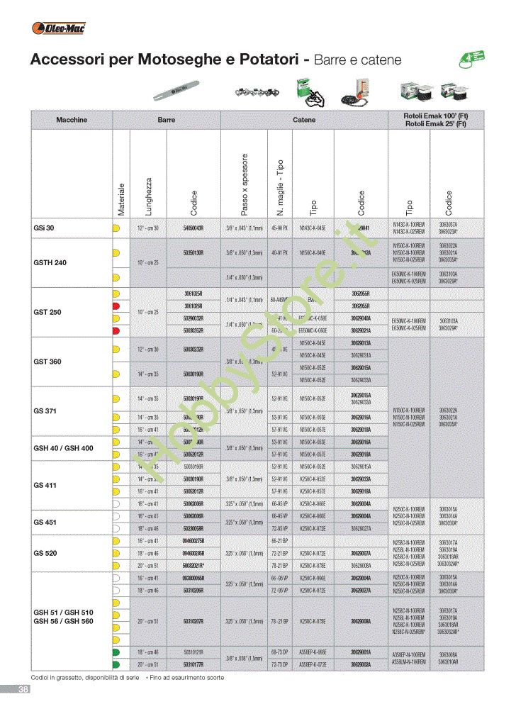 Barre e catene (1/2) Accessori per motoseghe e potatori