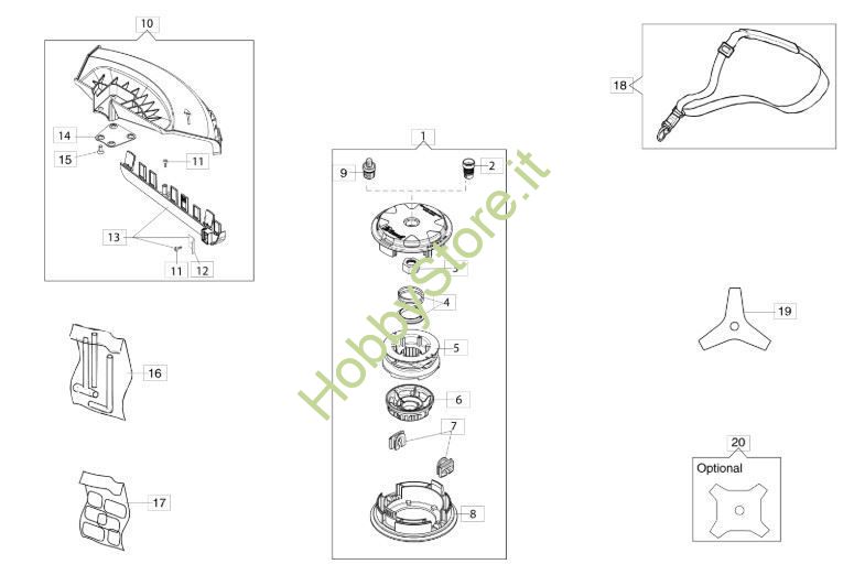 Tavola tecnica degli accessori per decespugliatore BC 400 S della Oleomac
