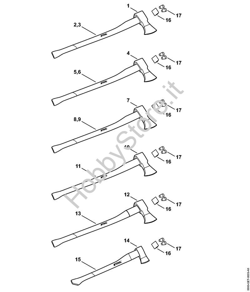 In caso di ordine di ricambi per il tuo prodotto Attrezzi per spaccare Accetta spaccalegna 1600 g della Stihl, per permettere al nostro staff di spedirti i ricambi corretti, inserire, nella pagina finale del carrello nel campo Note varie, anno della macchina e, se disponibile, il suo numero di matricola.