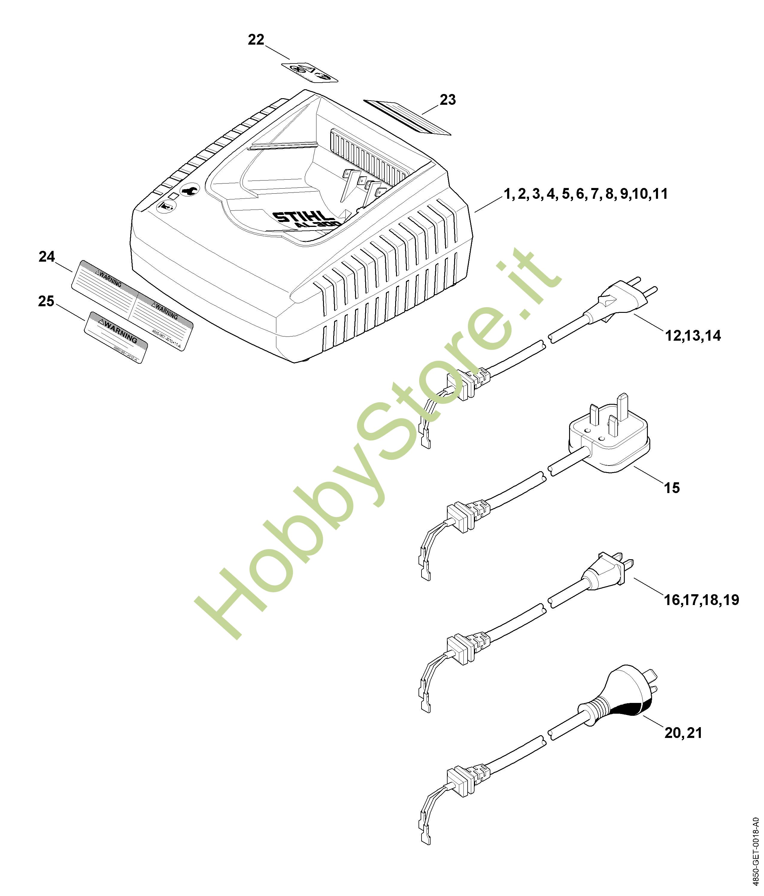 In caso di ordine di ricambi per il tuo prodotto Caricabatteria (AL) AL 300 della Stihl, per permettere al nostro staff di spedirti i ricambi corretti, inserire, nella pagina finale del carrello nel campo Note varie, anno della macchina e, se disponibile, il suo numero di matricola.