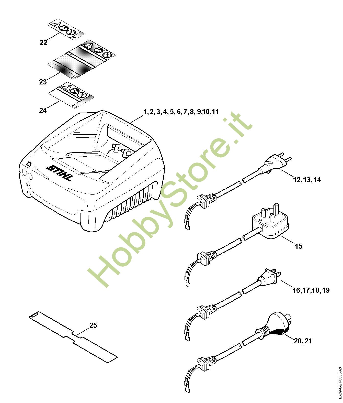 In caso di ordine di ricambi per il tuo prodotto Caricabatteria (AL) AL 301 della Stihl, per permettere al nostro staff di spedirti i ricambi corretti, inserire, nella pagina finale del carrello nel campo Note varie, anno della macchina e, se disponibile, il suo numero di matricola.