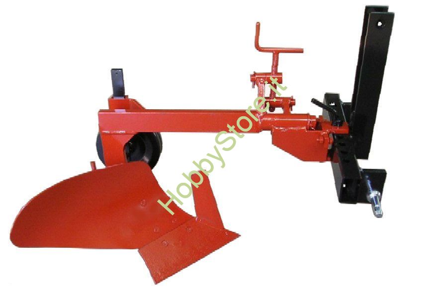 Aratro monovomere per la movimentazione del terreno. L'aratro deve essere collegato al trattore per mezzo dell'attacco a tre punti. Aratro monovomere completo di ruotino