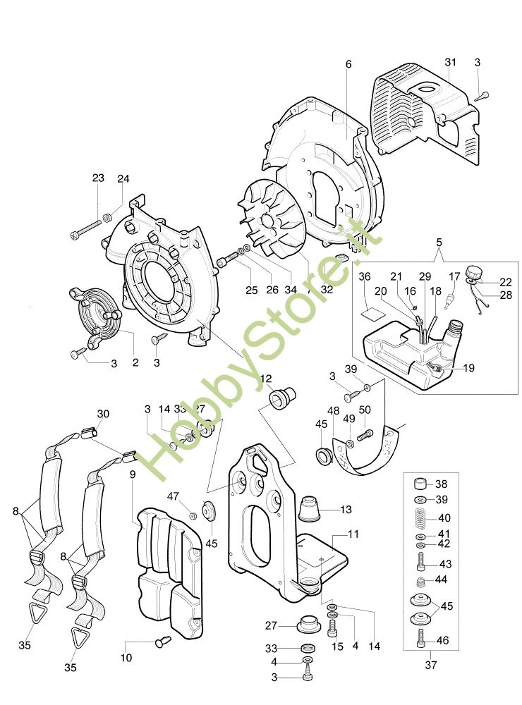 Ricambio Tappo serbatoio Telaio e gruppo ventola AM 162 Atomizzatore della marca Oleo-Mac Richiede pezzi:1