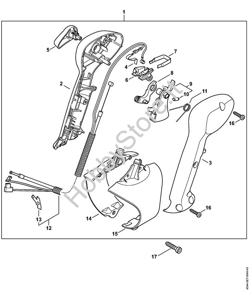 Ricambio Impugnatura di comando con tirante gas Soffiatori (BG, BR) BR 350 STIHL Contiene anche i ricambi da n. 2 a 16
