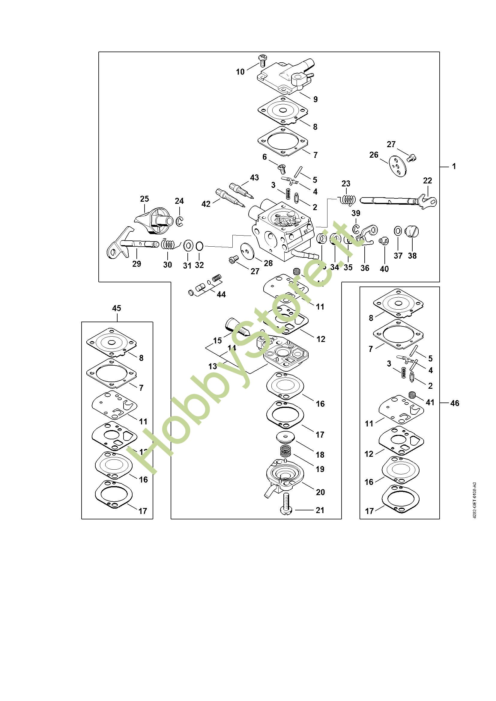 Ricambio Carburatore 4282/10 Soffiatori (BG, BR) BR 500 STIHL Contiene anche i ricambi da n. 2 a 44