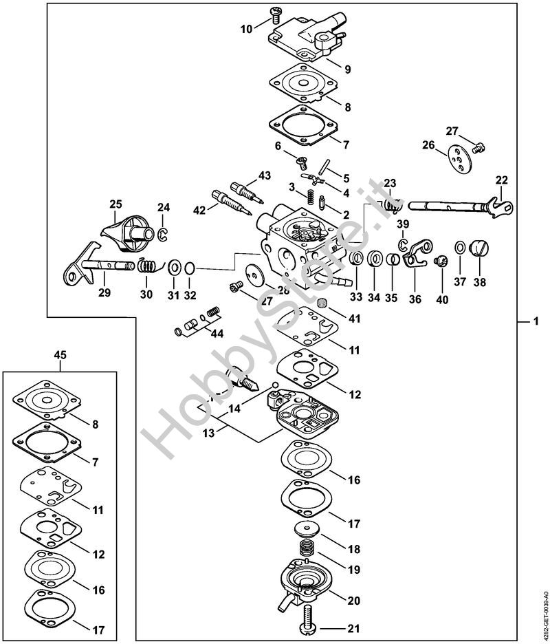 Ricambio Carburatore 4282/11 Soffiatori (BG, BR) BR 700 STIHL Contiene anche i ricambi da n. 2 a 44