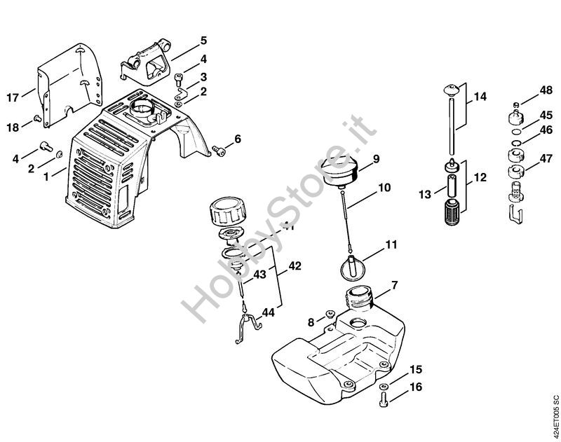 Ricambio originale Tappo serbatoio BT 106 BT 106 Stihl Contiene anche i ricambi nr. 10 e 11