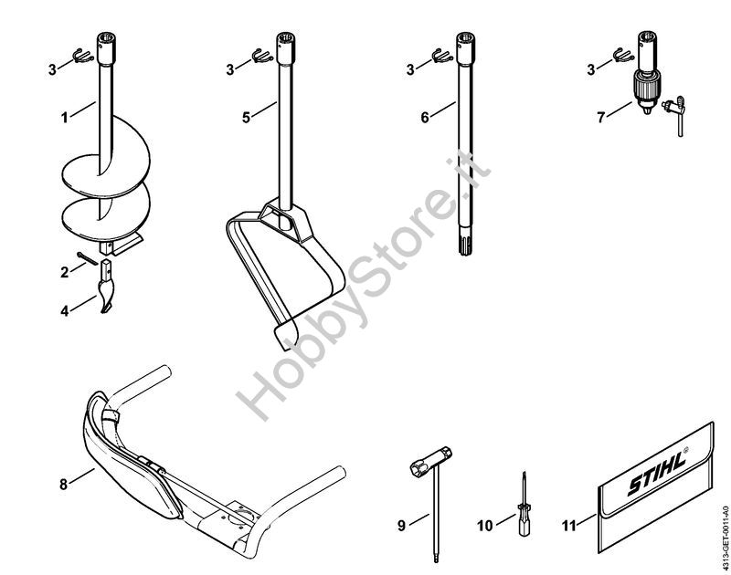 Ricambio originale Trapano a coclea per impianti diam. 150mm BT 120 C BT 120 C Stihl Contiene anche i ricambi da nr. 2 a 4