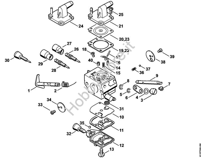 Ricambio originale Serie particolari carburatore BT 121 BT 121 Stihl Contiene anche i ricambi nr. 10, 11, 22, 23